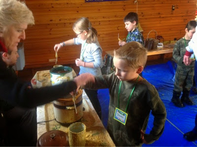 First graders enjoyed a wonderful field trip to Shelburne Farms today. They compared farming in the past with farming today. They started the day by watching a short play and then went on to various activities including feeding some farm animals, cleaning, carding and spinning wool, making butter, making beeswax candles, helping in the hay loft, and exploring antique tools.